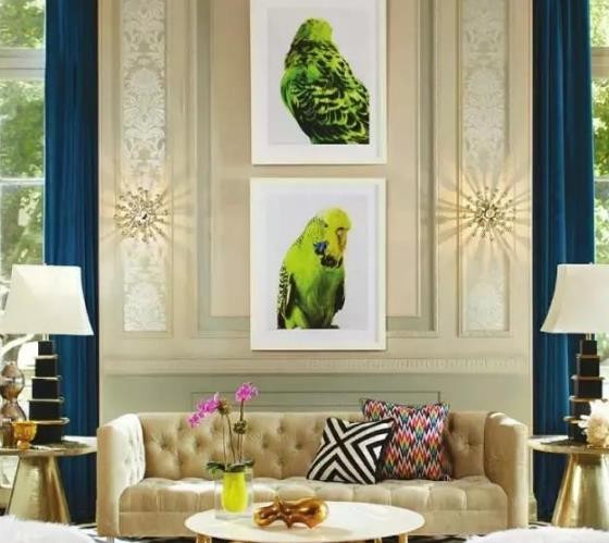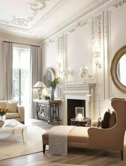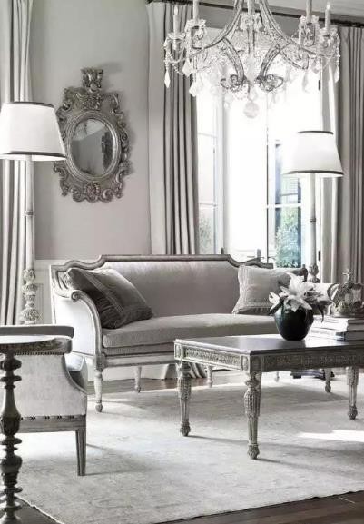 洛可可风格和巴洛特风格从单个上很难分清楚,所以我们就暂且将他们合为一体吧。比起古典主义风格,这种风格的客厅线条更柔美,纤细。在造型上常用对角线构图法,主题以爱情和享乐为主,花色更繁复,像极娇柔的贵妇和道貌岸然的古典绅士的合体。